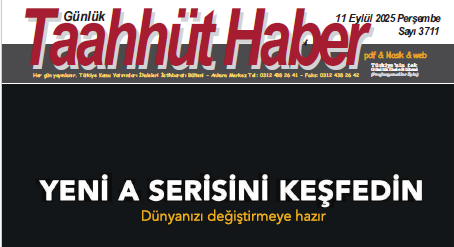 11 Eylül 2025 Perşembe tarih ve 3711 sayılı Taahhüt Haber’in bu günkü nüshasının bire bir kopyası PDF formatındaki baskısı ektedir. Taahhüt Haber PDF’yi bilgisayarınızın ekranından inceleyebileceğiniz gibi, yazıcınızdan bastırmak suretiyle de okuyabilirsiniz…