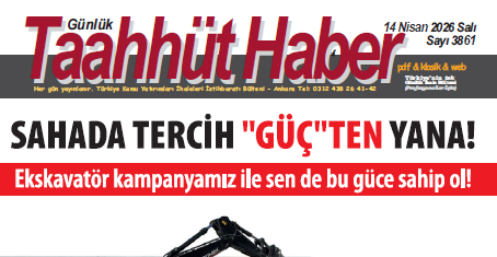 14 Nisan 2026 Salı tarih ve 3861 sayılı Taahhüt Haber’in bu günkü nüshasının bire bir kopyası PDF formatındaki baskısı ektedir. Taahhüt Haber PDF’yi bilgisayarınızın ekranından inceleyebileceğiniz gibi, yazıcınızdan bastırmak suretiyle de okuyabilirsiniz…