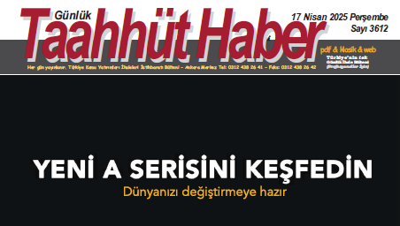 17 Nisan 2025 Perşembe tarih ve 3612 sayılı Taahhüt Haber’in bu günkü nüshasının bire bir kopyası PDF formatındaki baskısı ektedir. Taahhüt Haber PDF’yi bilgisayarınızın ekranından inceleyebileceğiniz gibi, yazıcınızdan bastırmak suretiyle de okuyabilirsiniz…