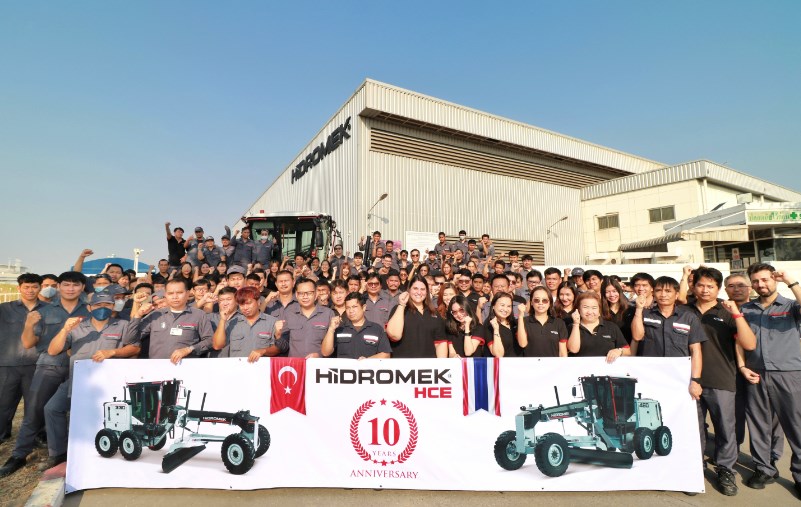 HİDROMEK’in yurt dışındaki ikinci ofisi ve motor greyder üretim merkezi olan HİDROMEK Tayland (HCE), kuruluşunun 10’uncu yıl dönümünü kutluyor. Motor greyder üretiminin yanı sıra HİDROMEK Tayland, aynı zamanda yakın coğrafyaya bayi yönetimi, satış ve satış sonrası hizmetleri de sağlıyor.